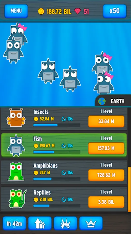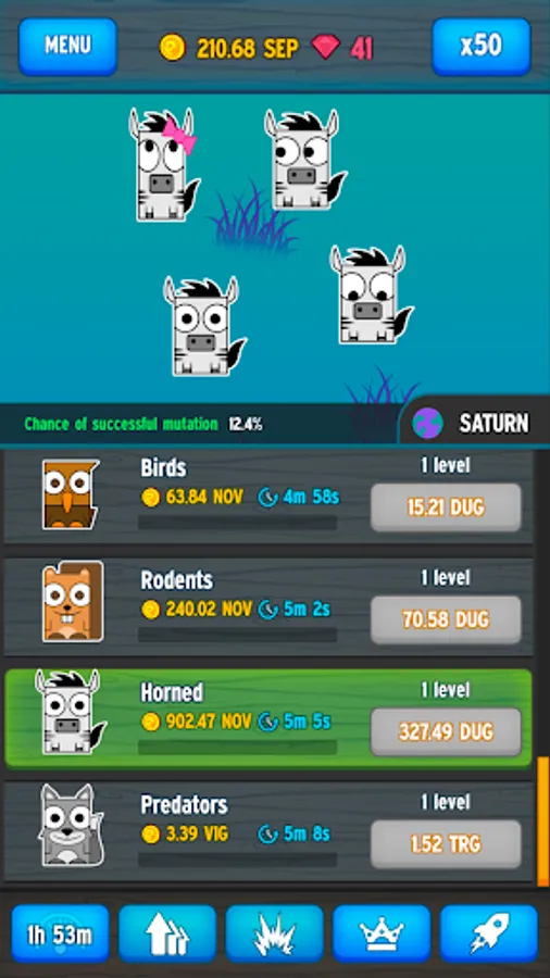 Nothing complicated! Cross two representatives of the same species and voila - the carcass was born protein. Squirrel gave birth to a fox. The fox gave birth to a cow. And behind them already to anthropomorphic mutants to give. But the evolutionary process is not as simple as it may seem. In Evolution Clicker, you will play the part of a whole God who holds a one-celled pen to the crown of nature - a man! Cope with this role?