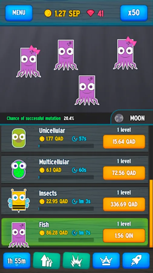 Once your monkeys evolve into humans, a new important aspect of the game opens. Develop scientific progress! Not all scientists are engaged in the study of evolution or the development of virtual reality glasses (VR). Some of them are engaged in more important things such as the conquest of the cosmos. When there is nowhere else to evolve, you can develop your space program and launch missiles. The most important thing is to overcome the laws of physics and bring the first rocket into orbit. After this, it is possible to colonize new planets.