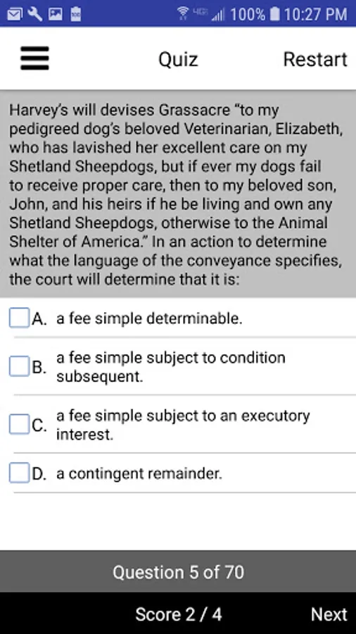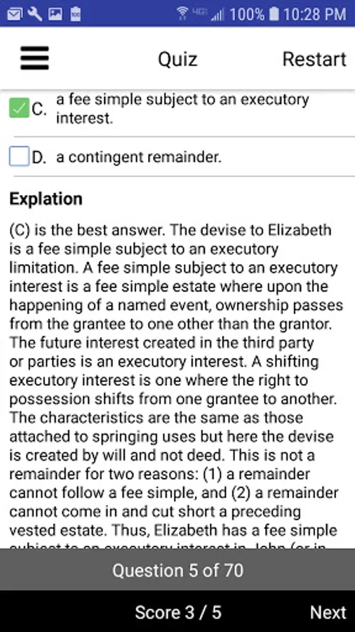 - 70 MBE-style multiple-choice practice questions with scoring and detailed explanatory answers. Test at your own pace and return to where you left off or reset the test to start from the beginning
