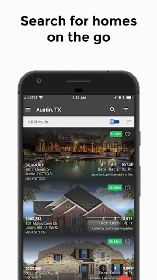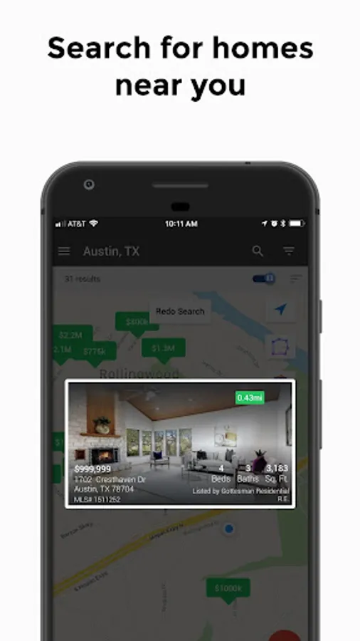 • Find for homes near you with one tap, pin those that you love sharable home boards and receive instant alerts when new matches hit the market (updated every 10 minutes in most markets).