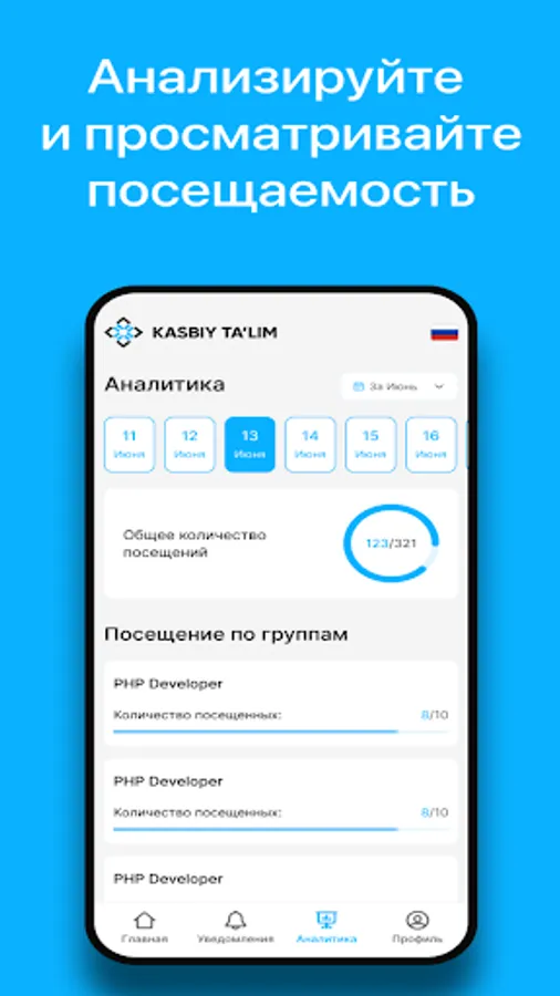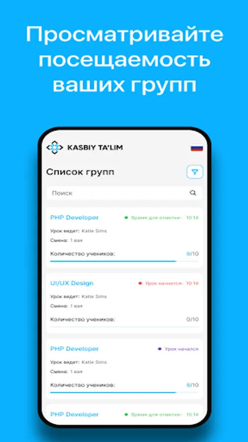 Dastur kasbiy-talim.uz kompleks platformasida o'quvchilarni yuzni tanib olish funksiyasi orqali (Face Control) kunlik davomatini yuritish uchun mo'ljallangan. Shuningdek, dasturda o'quv markazlaridagi o'qitish ahvolini real vaqt rejimida monitoringini olib borish va statistik ma'lumotlarini yuritish imkoniyati yaratilgan.