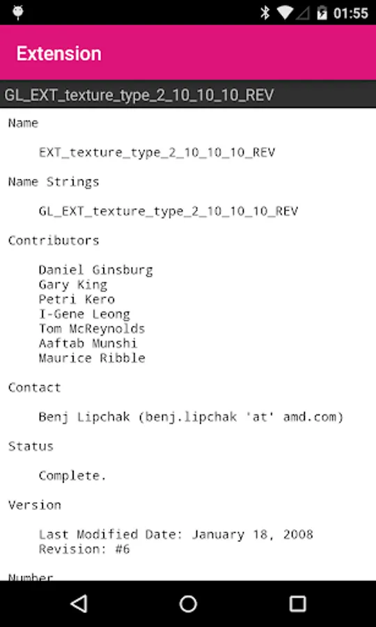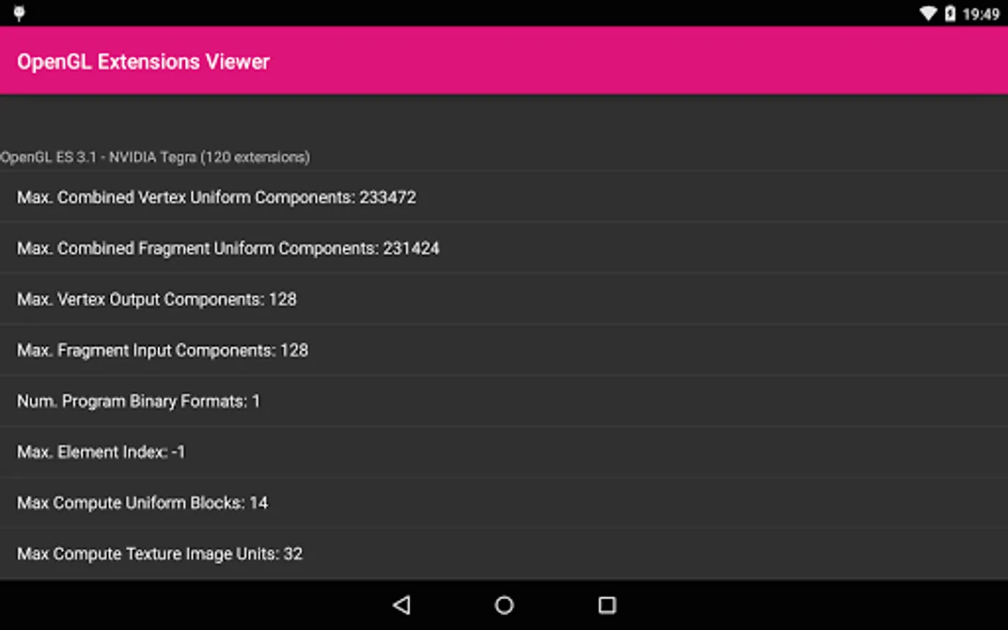 From the makers of the famous OpenGL Extensions Viewer on PC and Mac, the Android version can access each extension documentation, renderers capabilities.