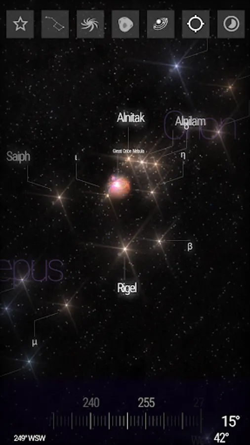 • Powerful universal search engine: type few letter and find a matching nebula, constellation, place, planets and more.