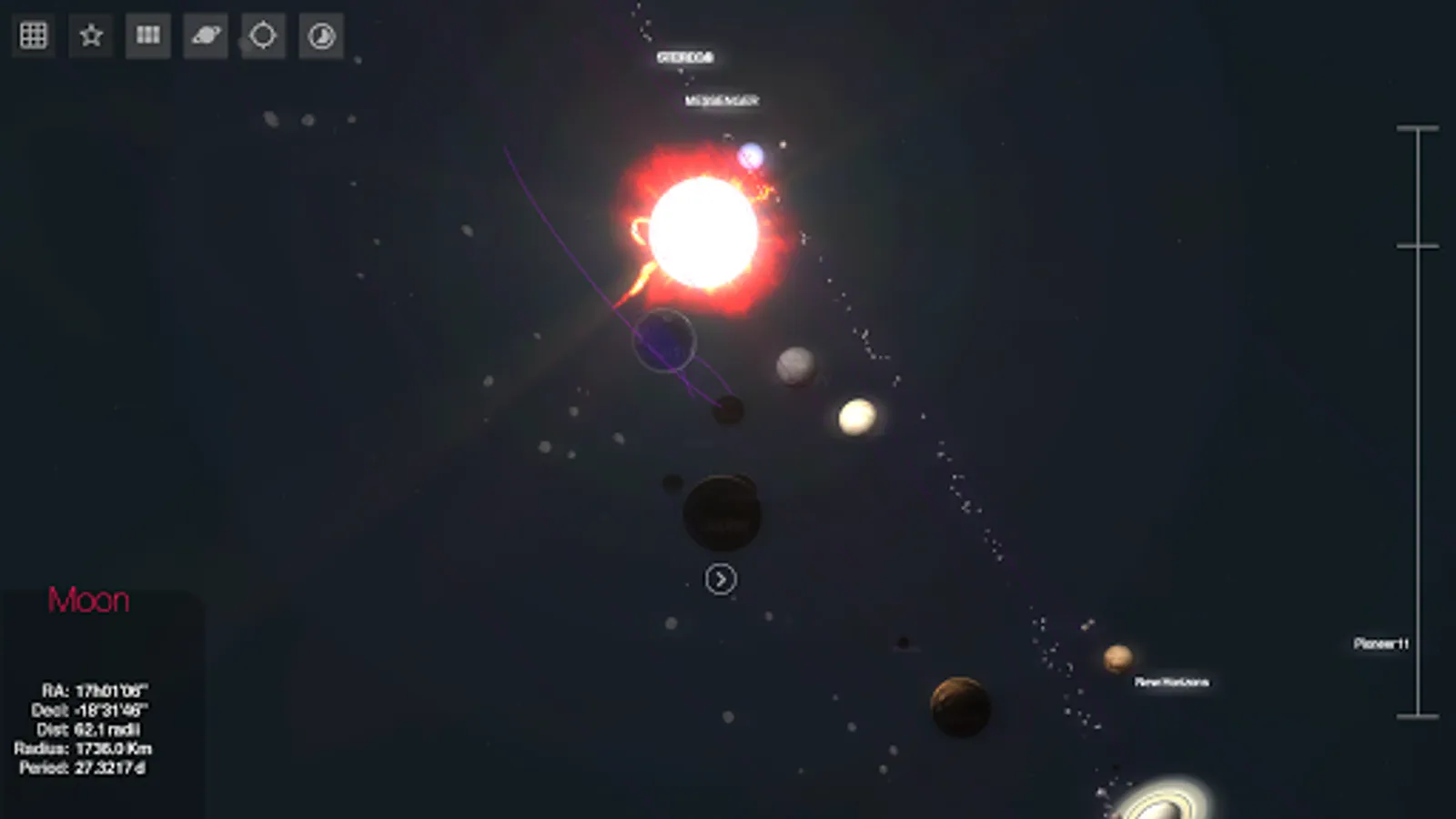 • a 3D real-time planetarium with photo-realistic rendering from Mercury to Pluto, Uranus and Saturn and every moons, including deep space exploration up to 50 parsecs.