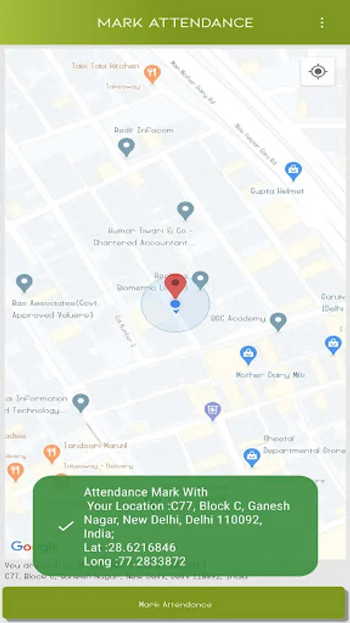 Online Attendance application. The employee is able to mark online attendance from outside and inside of the office.