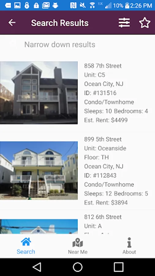 With this app you can view all aspects of vacation properties to rent in the Ocean City areas, including: