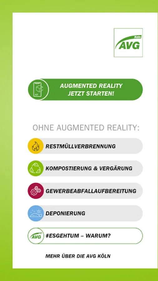 AVG Cologne offers the entire program to make something useful out of waste. There's a lot of technology behind it. And it's more interesting than you can explain with words. So if you want to get excited, just pick up your smartphone and scan the brochure.