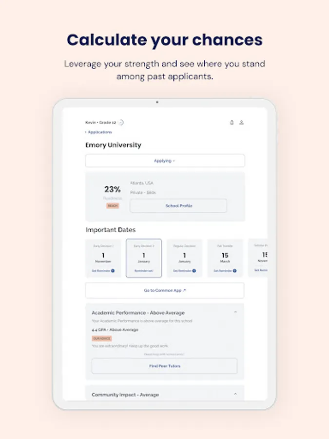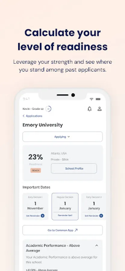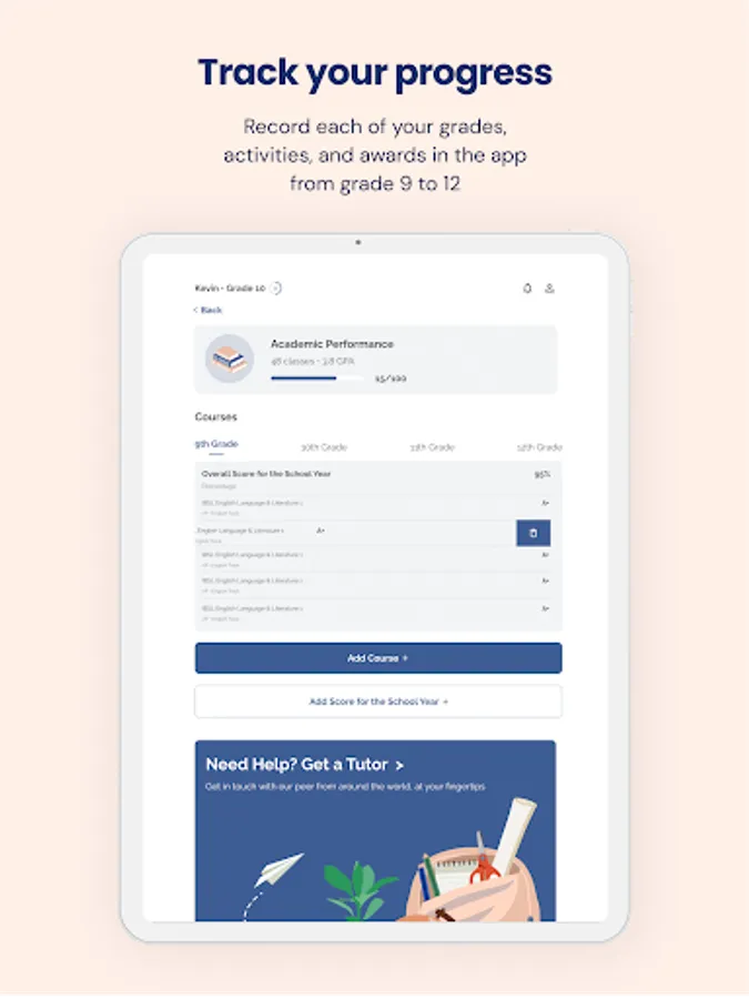 Record each of your grades, activities, and awards in the app from grades 9 to 12. Get an overview of your accomplishments and discover areas for improvement.