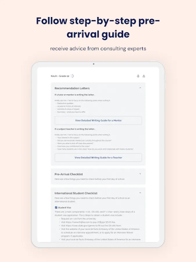 From dorm selection to visa application, receive advice from consulting experts who previously prepared thousands of international students for their new chapter in life.