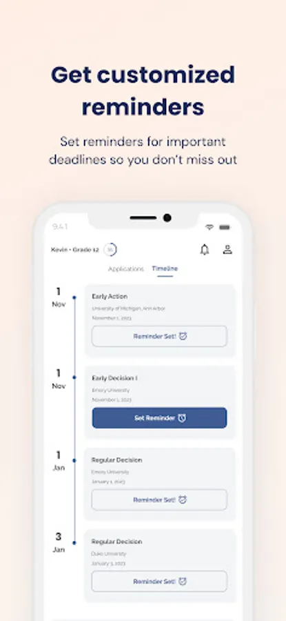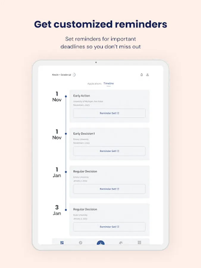 From Early Action to Regular Decision, set reminders for important deadlines so you don’t miss out.