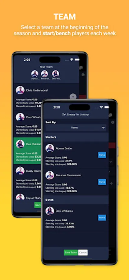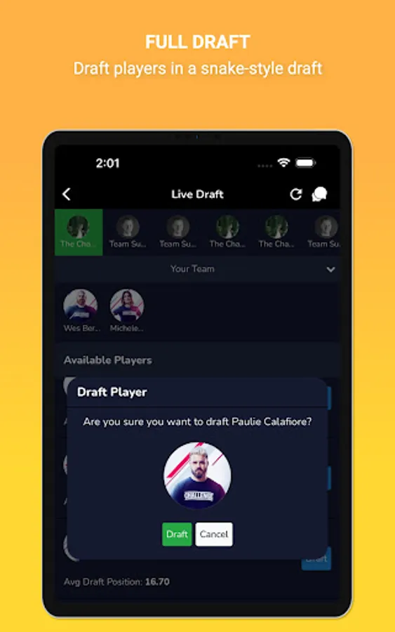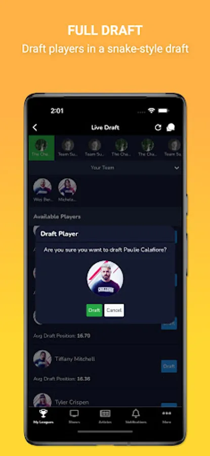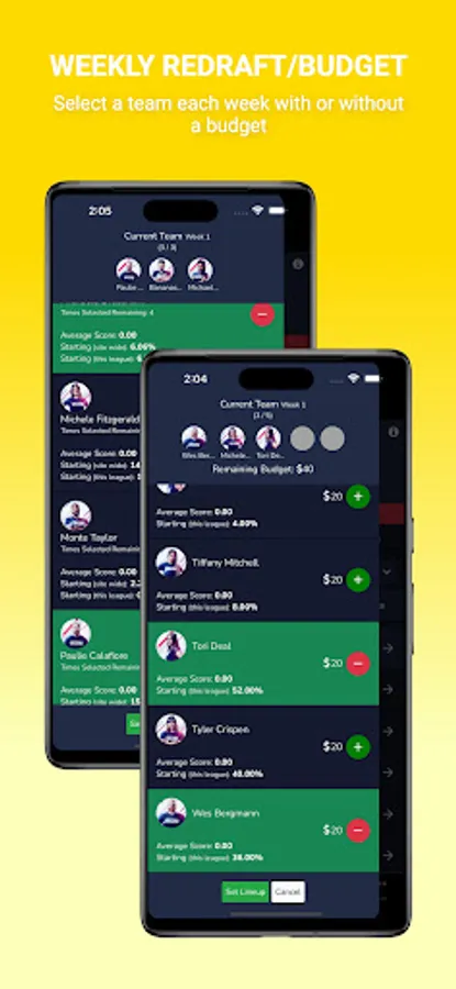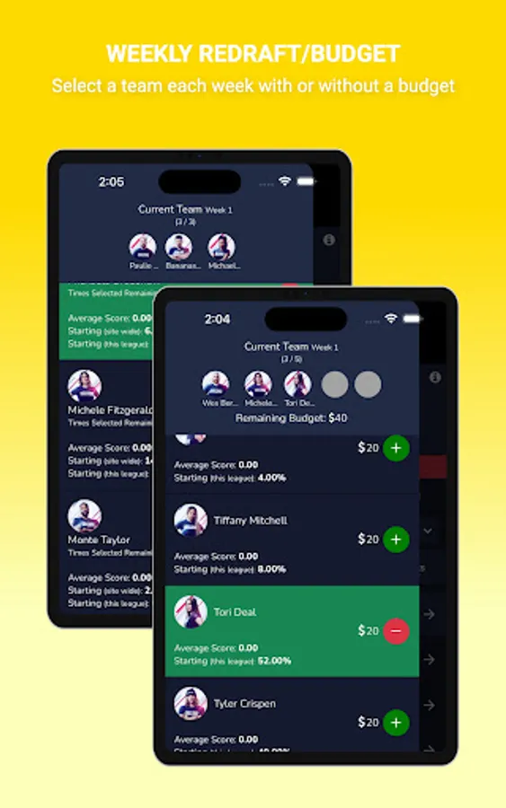 • Compete in Team, Weekly Redraft, Weekly Budget, or Full Draft leagues