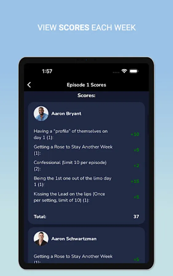 • Live scoring available to subscription users so that you can see scores come in LIVE when watching your favorite shows