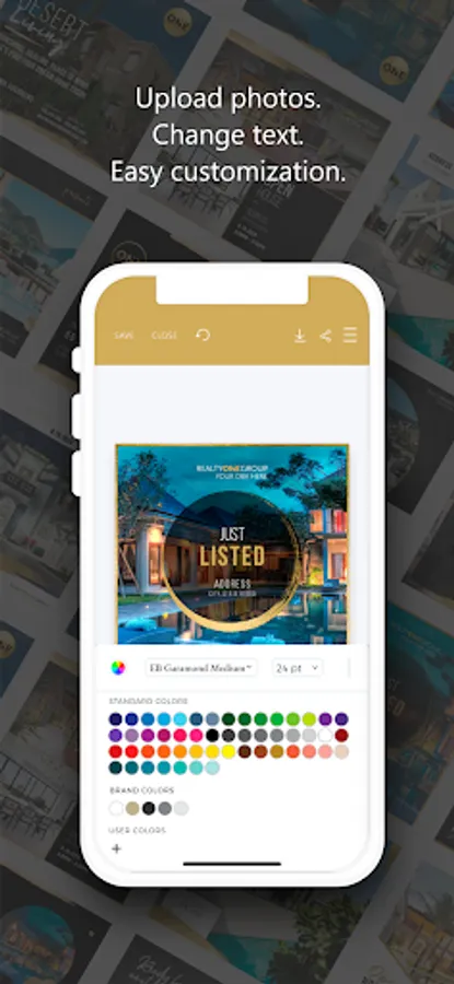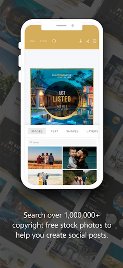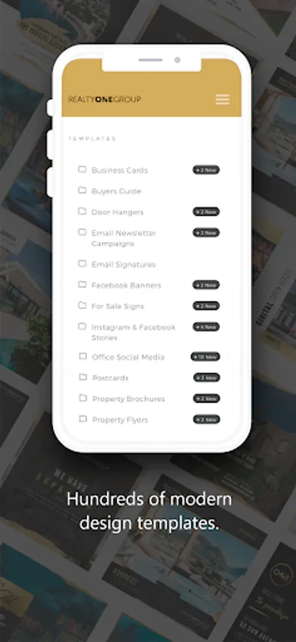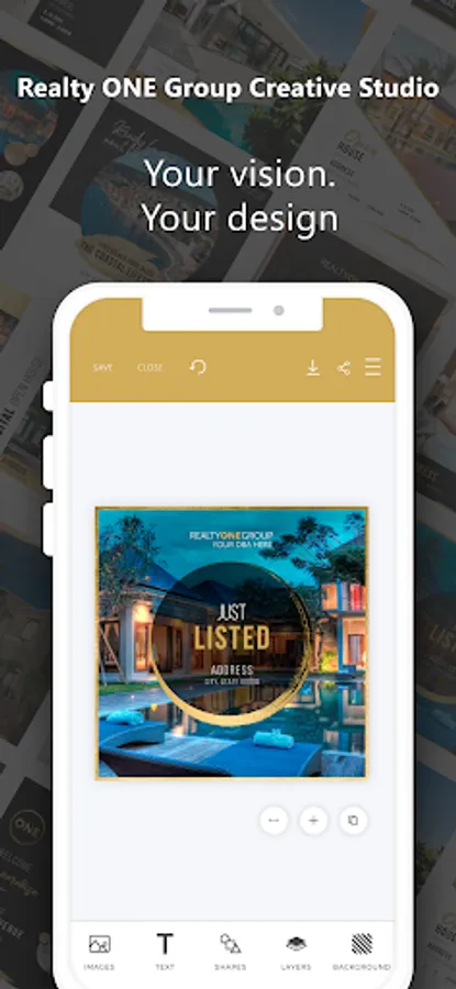 Create beautiful marketing assets from anywhere with the Realty ONE Group Creative Studio mobile app. Access your previously saved designs and browse hundreds of brand exclusive templates. The app’s mobile friendly design tool makes personalized customization quick, with saved personal information populating directly into creative pieces. Direct links to sharing on third-party apps like Twitter, Instagram and LinkedIn make it an efficient marketing tool for every real estate professional.