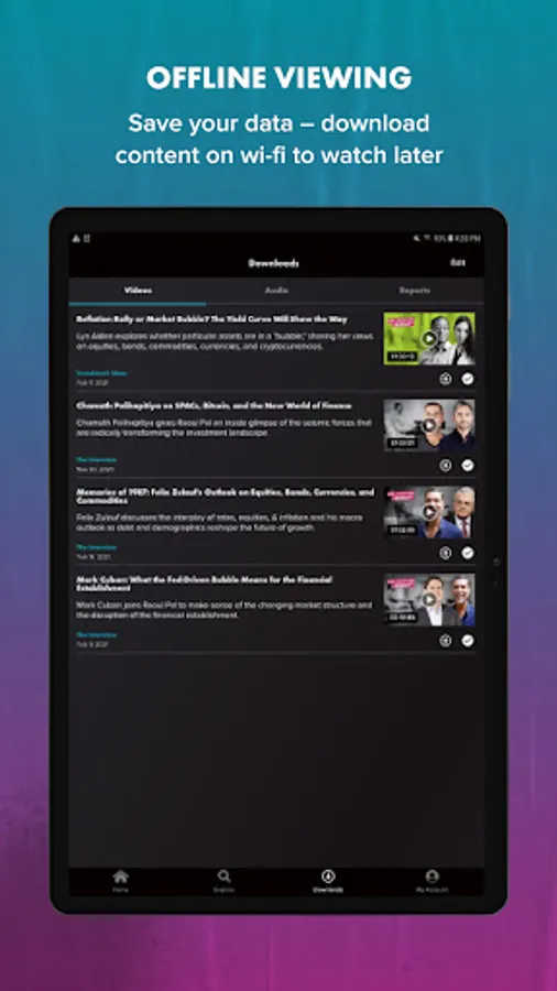 As a member of Real Vision, you’ll get a competitive financial edge with full access to the world’s only video-on-demand channel and written research for finance and investing. You will be able to effectively protect investments and grow your portfolio with exclusive insights from top financial experts.