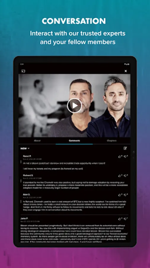 You can join Real Vision from within the app by purchasing a 12-month subscription to Real Vision membership.
