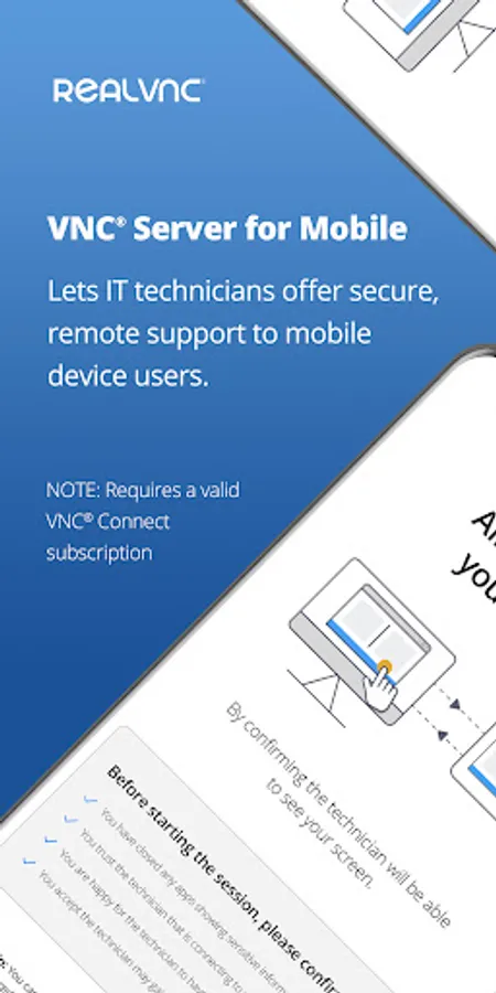 With the RealVNC® Server mobile app, an IT technician can remotely access mobile devices to support users.
