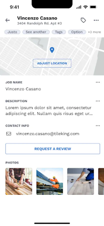 The job workflow allows field users to describe the work they are doing at a job site using keywords that the business wants to be associated with in online searches. The content also contributes to building a social proof of the job by capturing photos and videos of the job, and when combined with business reviews, the content can be leveraged to drive the online presence of the business.