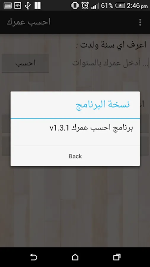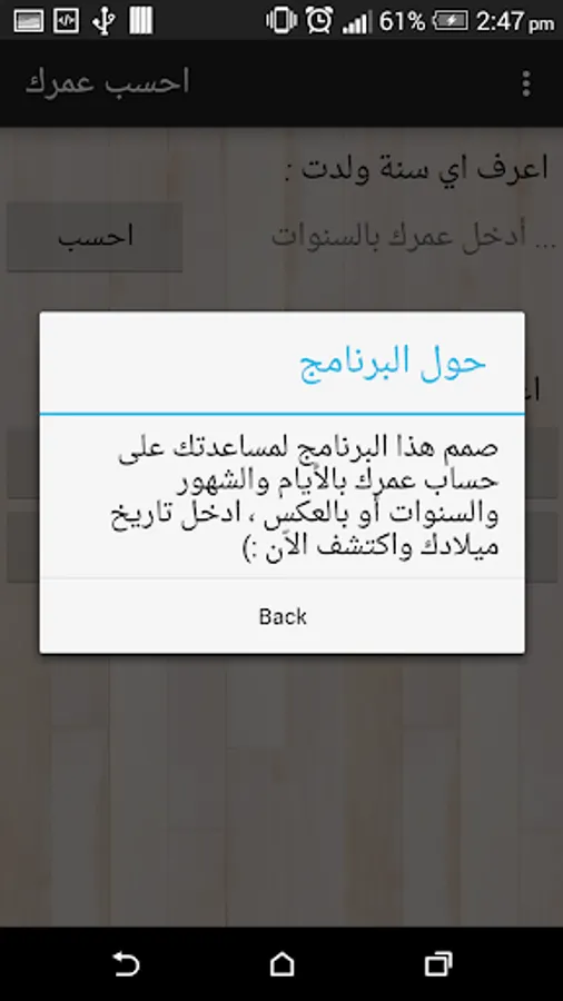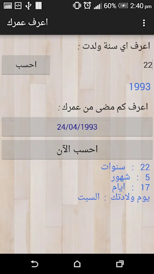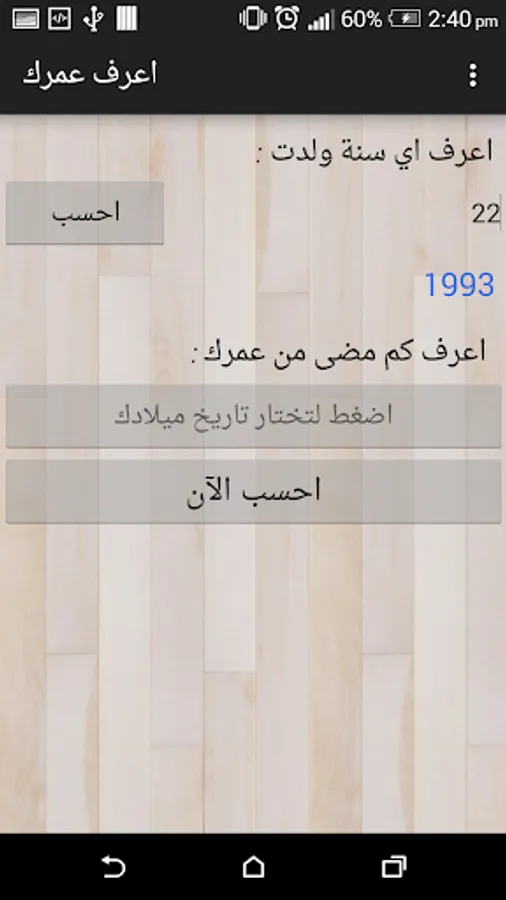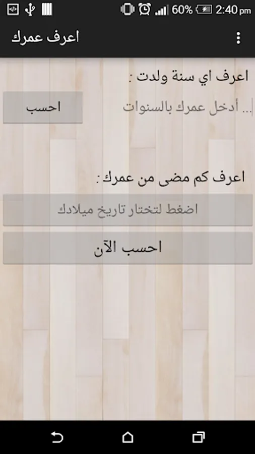 يمكنك أيضا ادخال عمرك بالسنوات وسوف يحسب لك هذا التطبيق في أي سنة قد ولدت.
