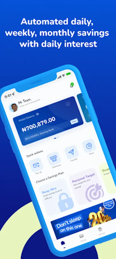 Start a savings plan with as low as N500 on Reaprite and earn interest daily.