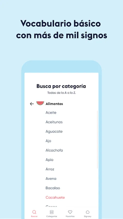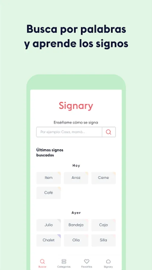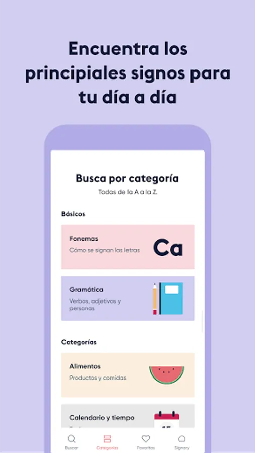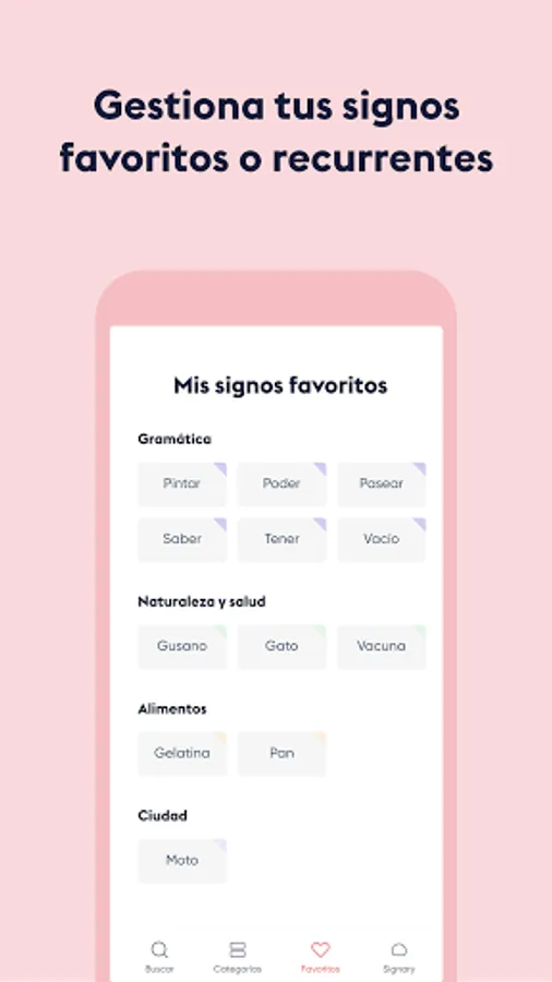 Signary is an intuitive and simple app created in order to favor the communication of people with difficulties in oral expression through adapted signs accompanied by the emission of the word.