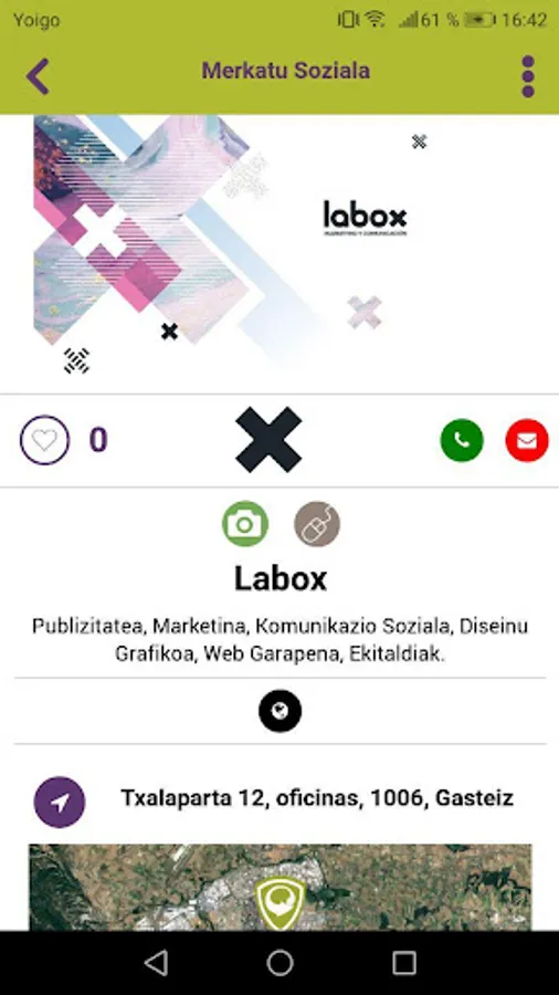The app has an interactive map where entities are geolocated, being possible to select them by activity sectors. Likewise, entities can be accessed in a list format.