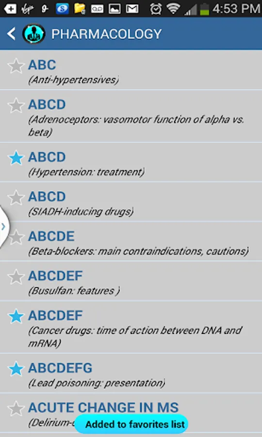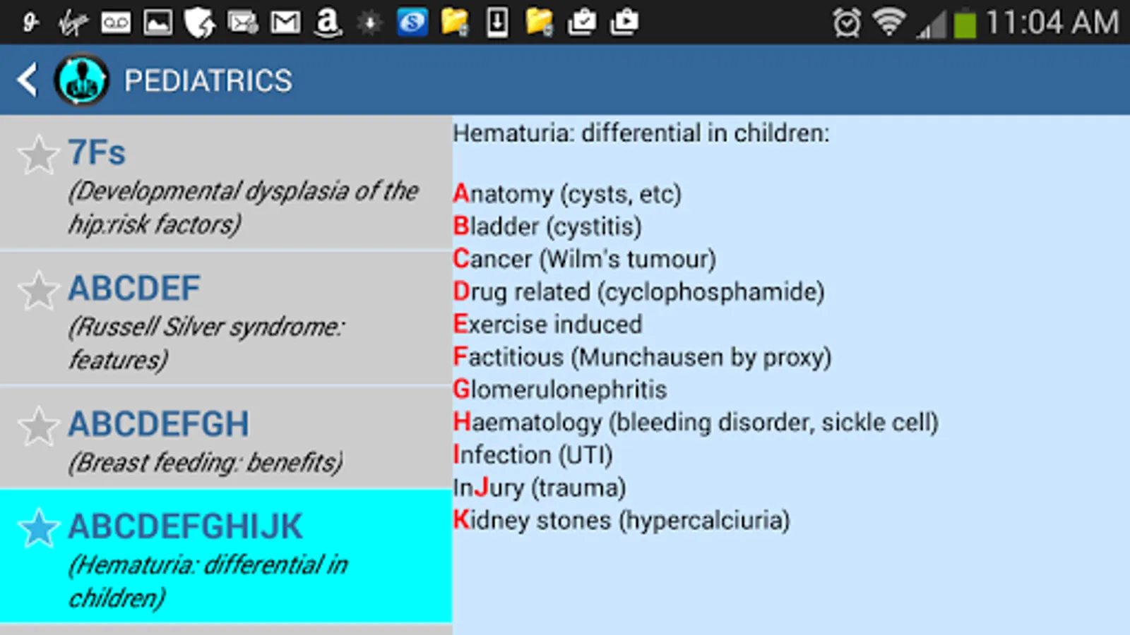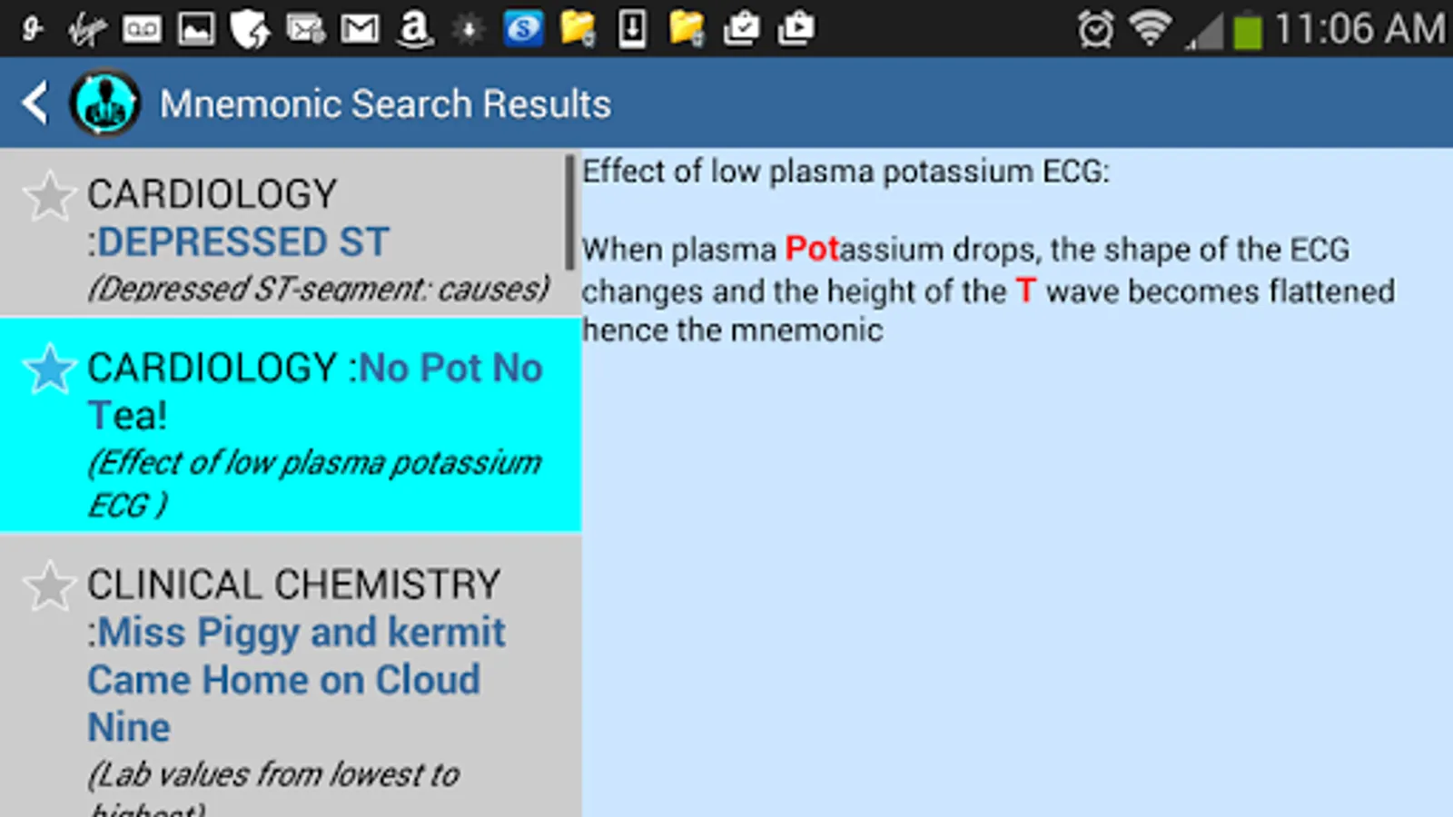 1500+ clever acronyms, rhymes, and memory tricks, on various medical topics and medical sciences ranging from basic medical sciences like anatomy and physiology to more specialized medical disciplines like cardiology , urology and dermatology. *Created for medical professionals by medical professionals. *Help with hard-to-remember concepts like the Pediatric Immunization Schedule and Respiratory and Metabolic Acidosis and Alkalosis. *Excellent study aid for Medical Students, Nurse practitioners, Dentists, practicing doctors, practicing nurses and other healthcare professionals. *Extensive coverage of hard-to-remember and various medical specialties *Works in portrait and landscape mode *You can save your favorite mnemonics for quick recall! * You can browse and search for quick study *Excellent study aid for the USMLE, ANCC, NBDE,PLAB, NCLEX-RN and NCLEX-PN board exams *Color-coded mnemonics to aid learning.