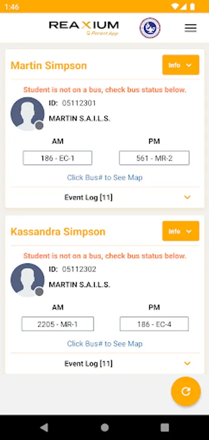The MyReaXiumApp grants subscribed stakeholders, such as parents or guardians of bus riders, the ability to receive notifications of their bus or student status. When a student authenticates at the onboard mobile device, their parent/guardian(s) receives a notification through the app that they have successfully boarded, including time and location information for this action. App users can also review route information and track their student assigned buses in real-time.
