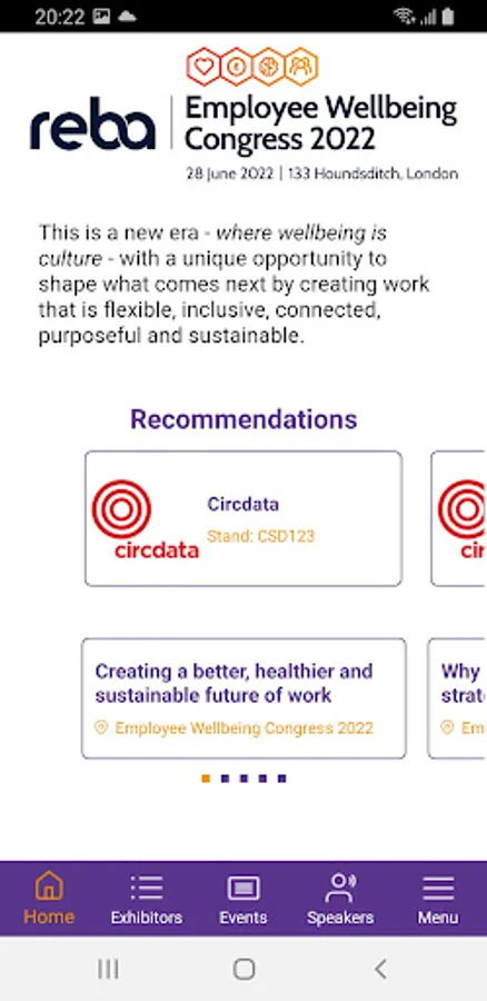 Delegate app for attendees to book their sessions, plan their day including which exhibitors to visit. Brought to you by REBA for the Congress on 28 June 2022.