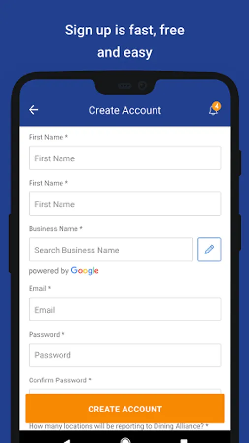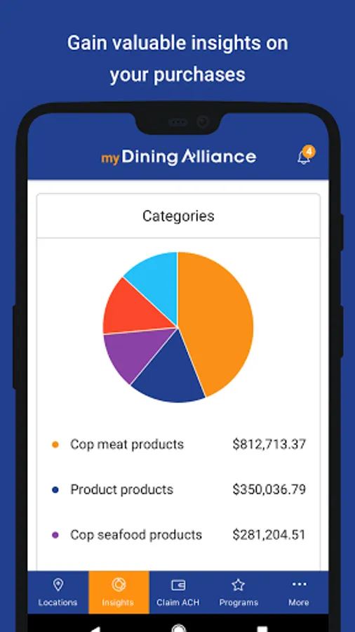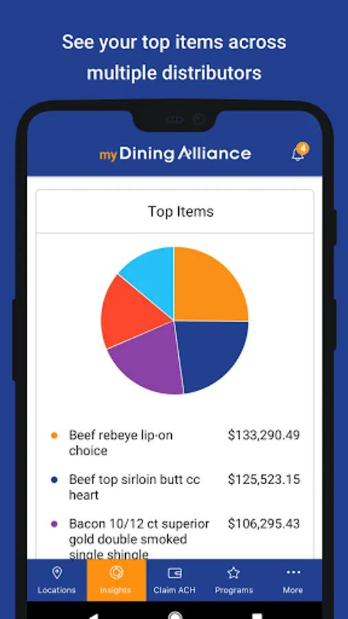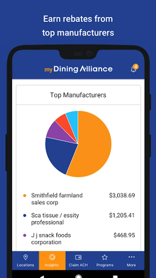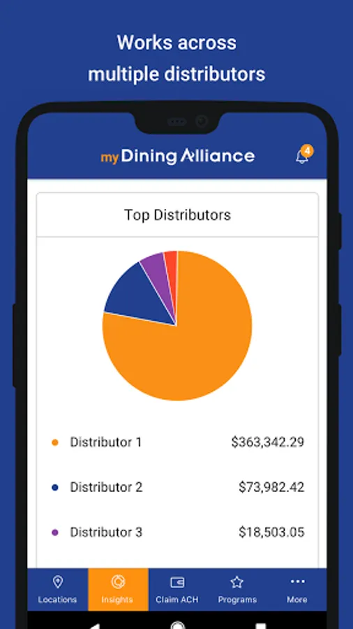 The Dining Alliance app makes managing your Dining Alliance account a breeze. You can sign up for Dining Alliance, input your distributor account numbers, check the status of your rebates, claim your rebate payments, register for free savings programs and view valuable insights about your account with ease.
