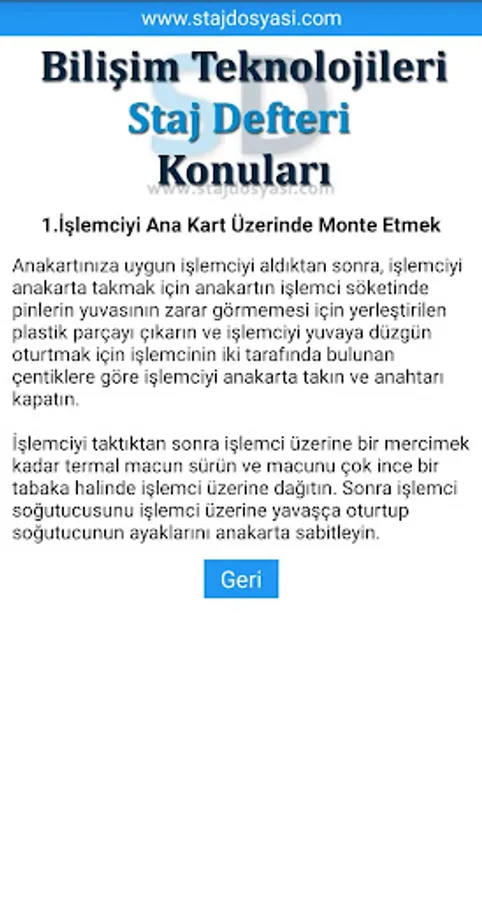 For the internship books of Anadolu Technical, Anatolian Vocational and Industrial Vocational High School students studying in the field of Information Technologies, internship subjects are listed below.