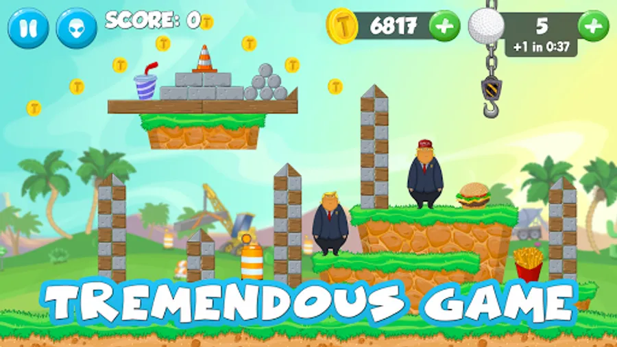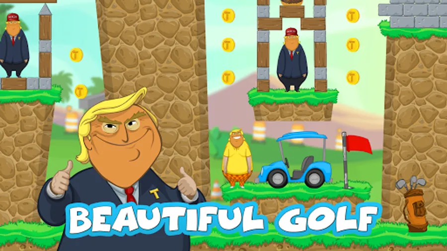 Nothing will stop Trumpy Dumpty from building his wall as he dispenses his clone henchmen to prevent you from golfing on his incredible courses.