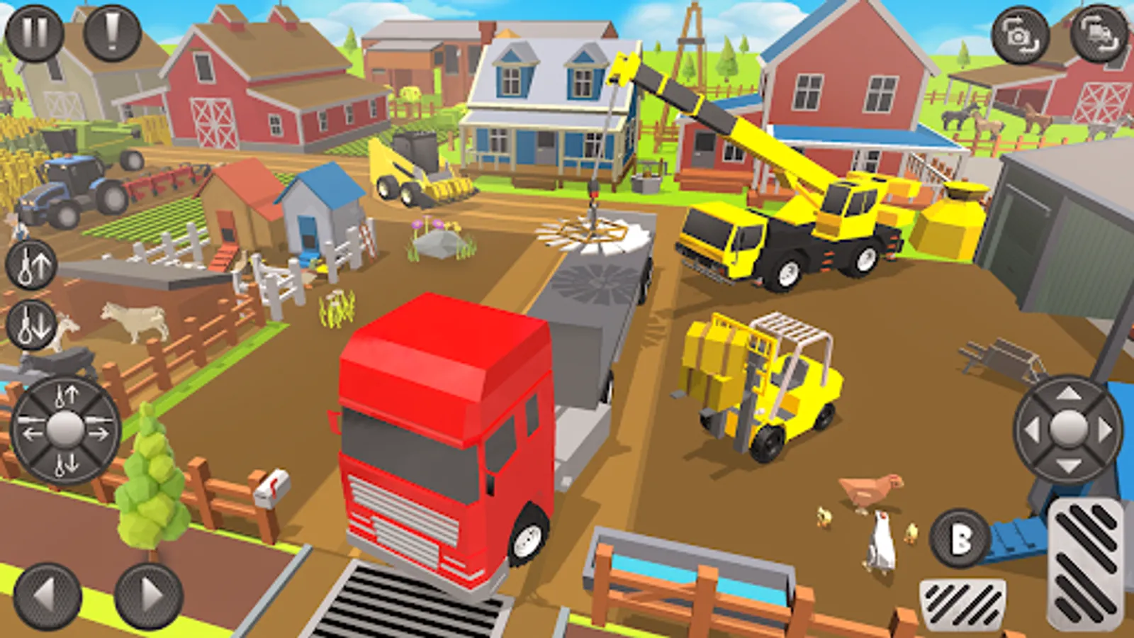 Your second responsibility is a city airport construction task. On the construction site, you will build a new airport hanger and some maintenance work on the runway in this airport construction job. The third constructions site will be a modern farmhouse construction task where you will build a barn in real farm building construction.