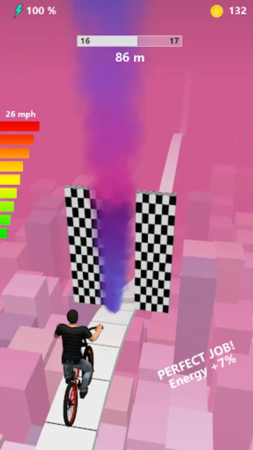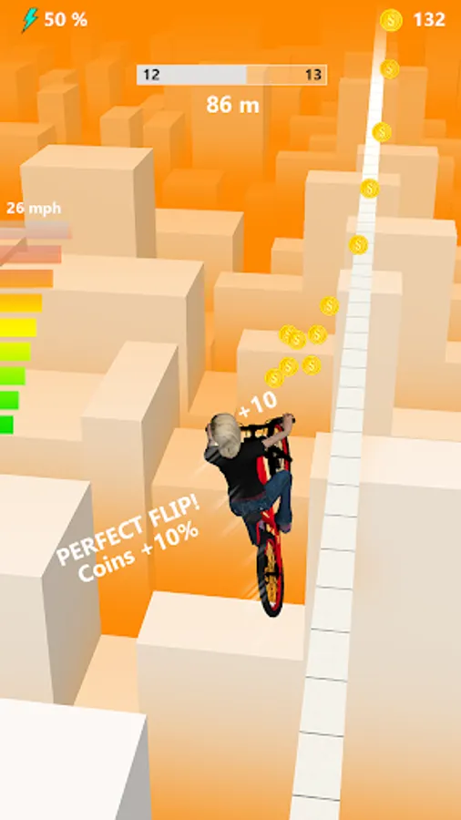Think quick and tap on increased bike speed to reach incredible speeds. Jump & race through obstacles and make your amazing endless BMX bike flip game run faster.