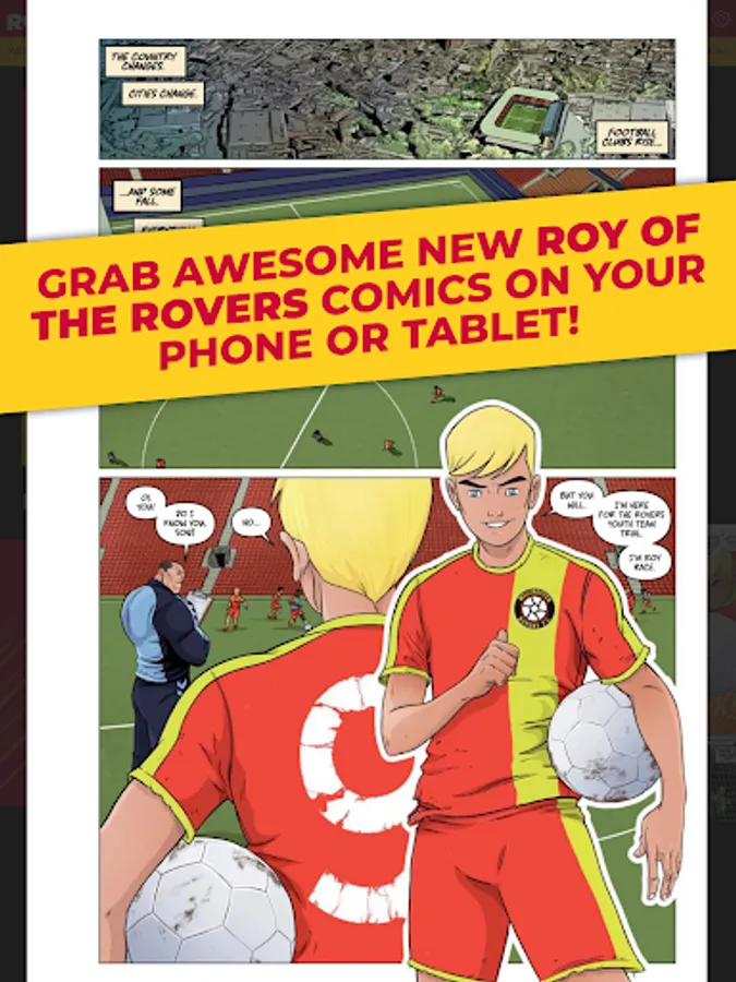 The brand new Roy of the Rovers graphic novels and fiction titles are coming to your Android tablet or phone – plus incredible FREE comics!