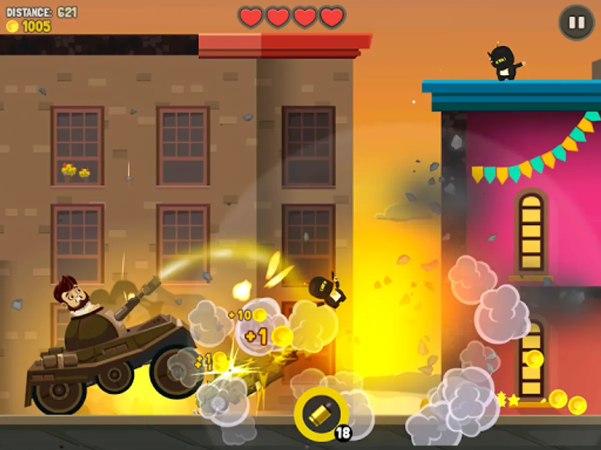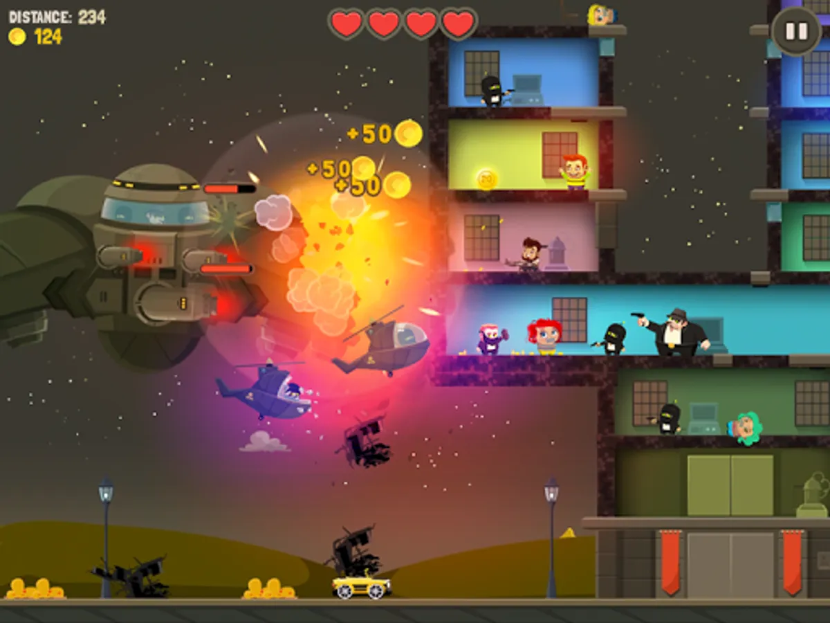 Defeat invaders and terrifying Bosses to get access to powerful weapons, cars and power-ups!