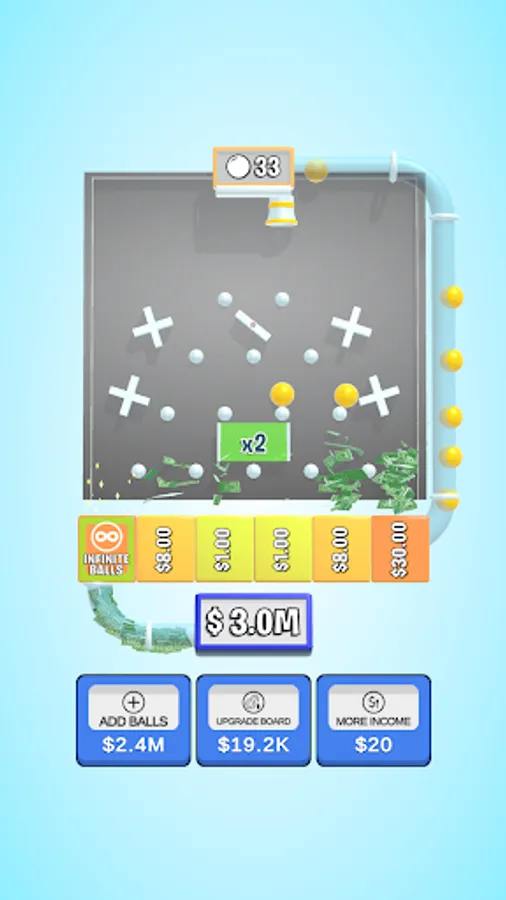 Upgrade your board to the ultimate money making machine and spam those balls.