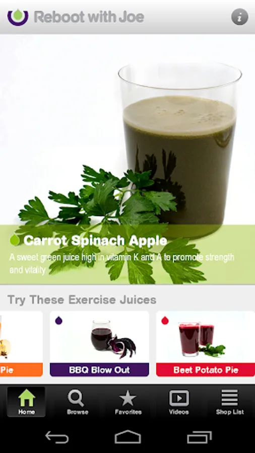 Whether you’re new to juicing, looking for new recipes, or hoping to Reboot by only consuming fresh fruit and vegetable juice for a period of time, this app features 101 of the best juice recipes selected by Joe to keep your body fueled with plant-powered energy.