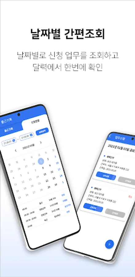 You can see today's arrival and departure times at a glance. You can search by date and check the work you have applied for on the calendar.