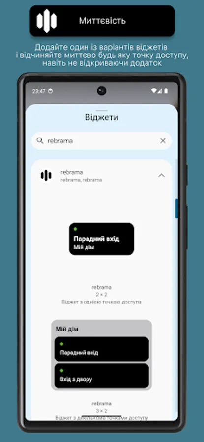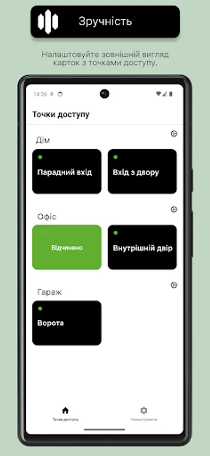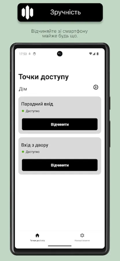 - Open any access points from your smartphone - gates, doors, barriers - all this is convenient and almost instantly;