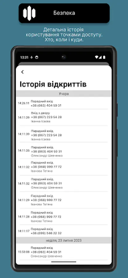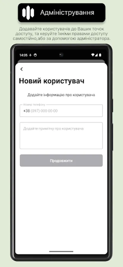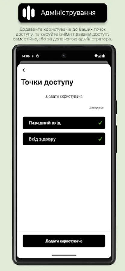 - Authority delegation system, appoint administrators of the access control system yourself and directly from the application;