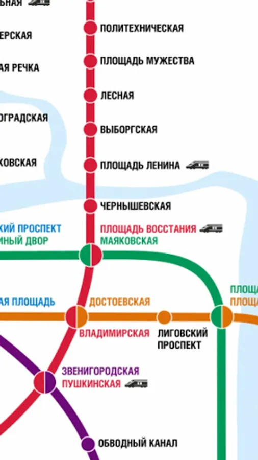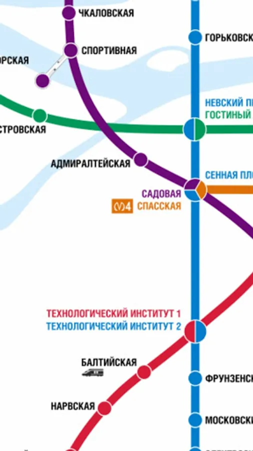A simple map of the St. Petersburg metro map, convenient for guests and tourists.