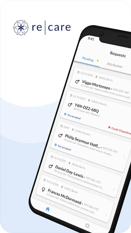 In order to receive hospitalization requests on your smartphone, download the Recare application. If you are not yet registered with us, please contact us on +33 1 76 43 35 36 to create your personal account.