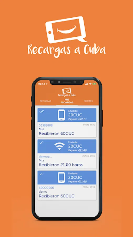 Refills to Cuba arrive in less than a minute. You will see how simple it is!