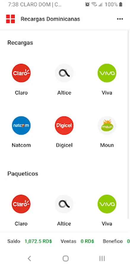 Sale of recharges and data plans. We work with the companies: Claro, Altice, Viva, Digicel, Moun and Natcom.