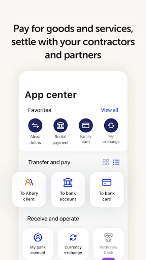 Receive, send, spend and convert money regardless of geographical borders. Altery supports all popular currencies (GBP, USD and EUR), plus more local currencies to come.