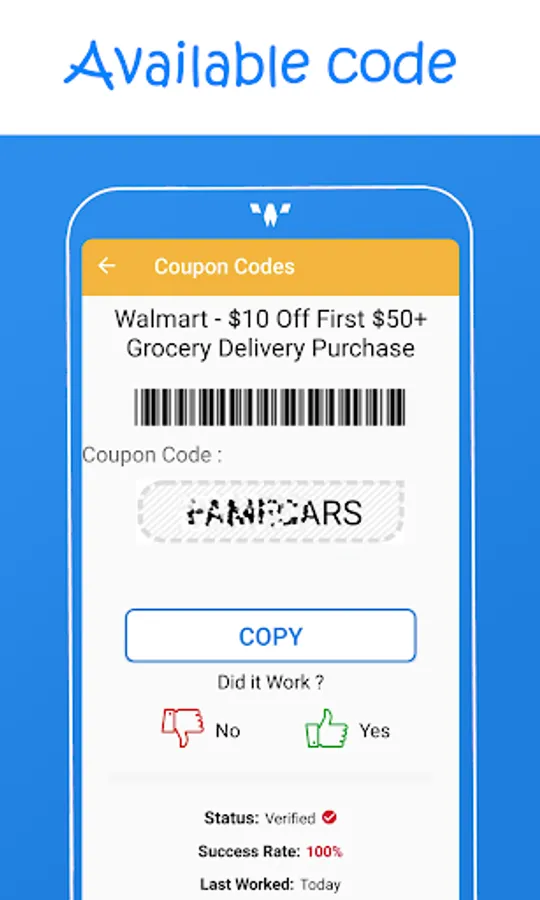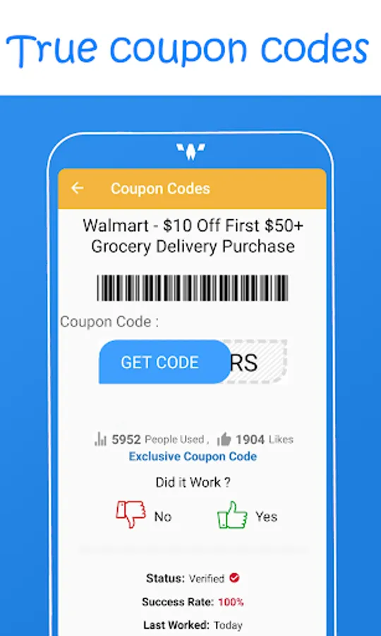 This promo code discount App lets you find good coupons and hot deals for your Walmart Grocery.