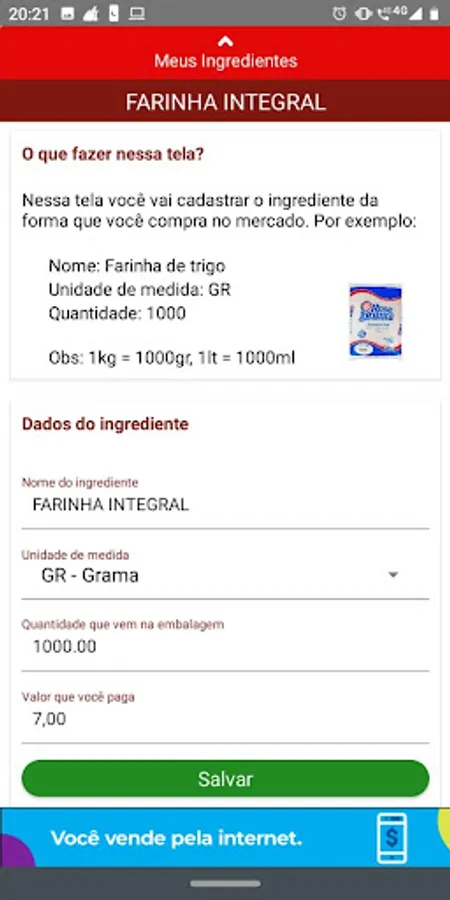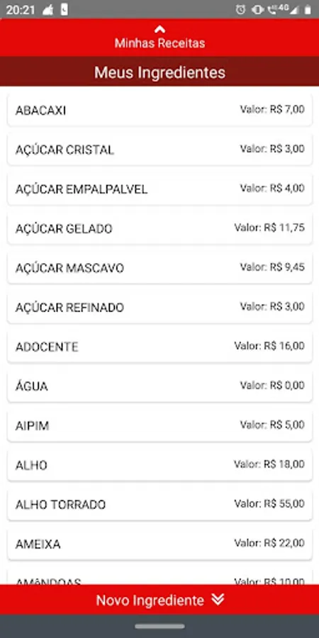 In a practical way you register only once the most common ingredients of use, such as their price and the unit of measure you buy (kg, ml, ...) and then when you register a recipe they will already be registered and ready to compose the final value of your product.