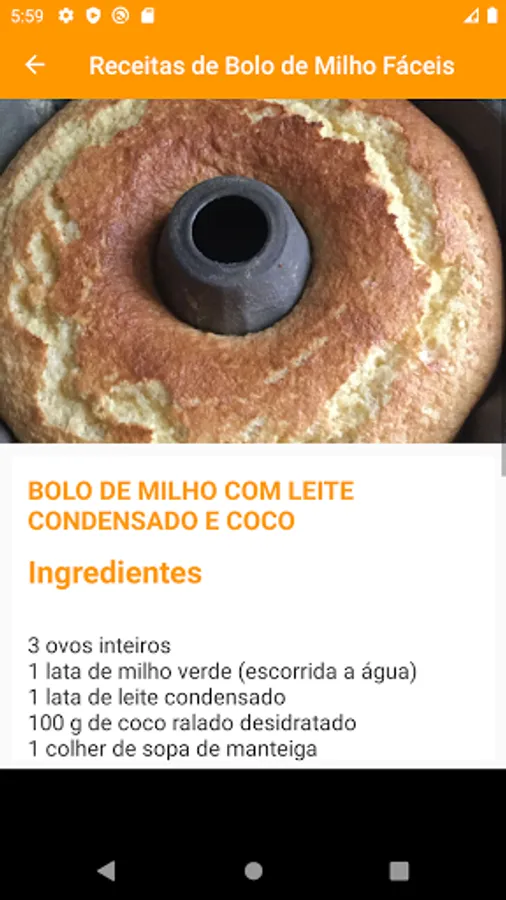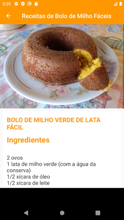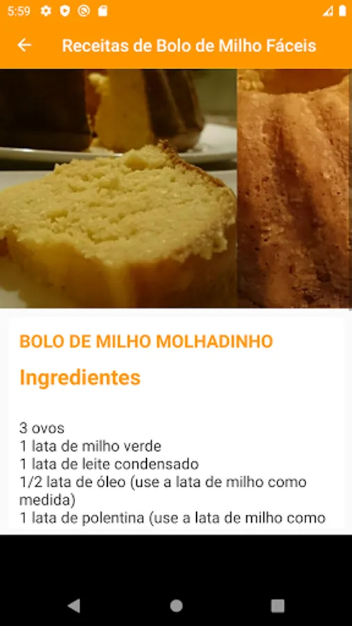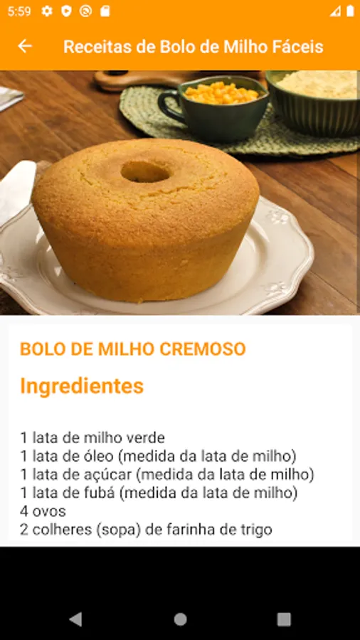Corn cake, also known as cornmeal cake, is a type of cake in which the main ingredient is corn, which may be green corn cream or corn flour, also known as cornmeal. It is a traditional dish of Brazilian cuisine.