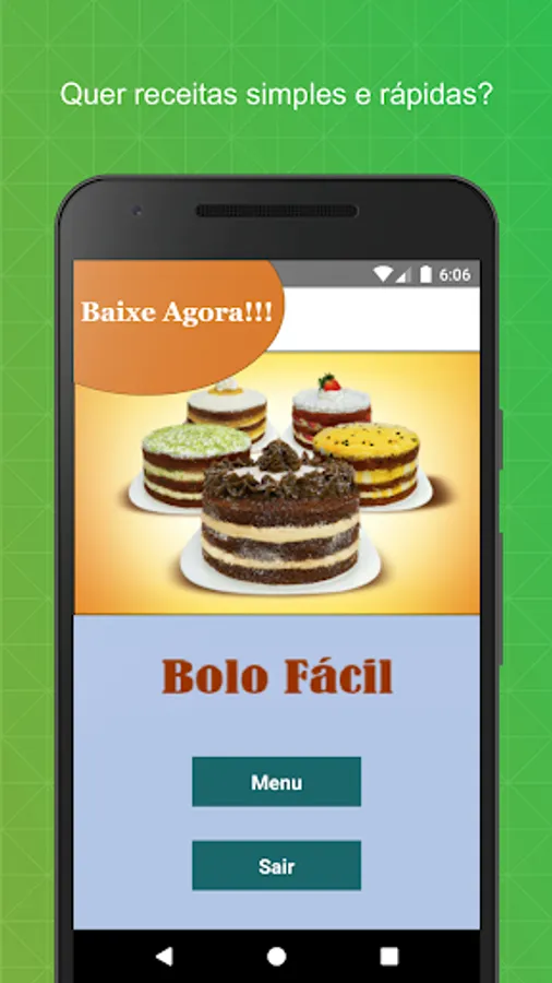 This app is a guide to easy and quick recipes for sweet cakes. The app contains in its menu a total of fifteen recipes simple and well diversified so there is no shortage of options, so you can choose the one that most suits your palate, but here's a tip: try them all!