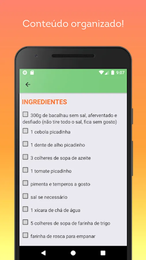 The app features sixteen recipes on its menu and all recipes are simple, economical and very different from each other, so you can taste the one that makes you mouth-watering.